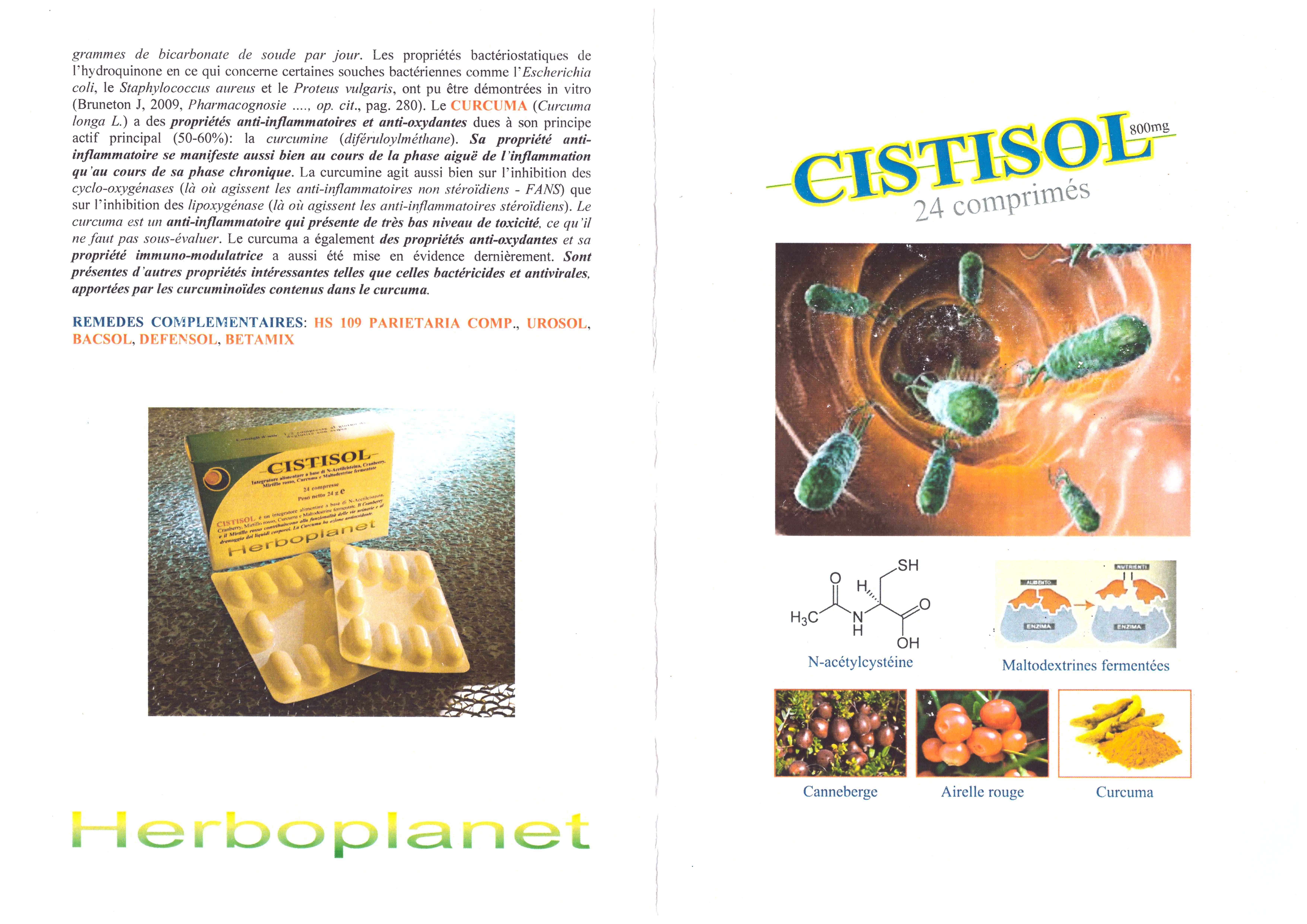 hydroquinone, elle-même éliminée par les voies urinaires après glycuroconjugaison et sulfoconjugaison hépatique. Les métabolites hydroquinoniques arrivent dans le bassin rénal et dans la vessie où, dans un environnement alcalin, de l’hydroquinone se libère encore afin que se manifeste ses propriétés antibactériennes et ceci dans les 3 ou 4 heures suivants l’administration du produit.