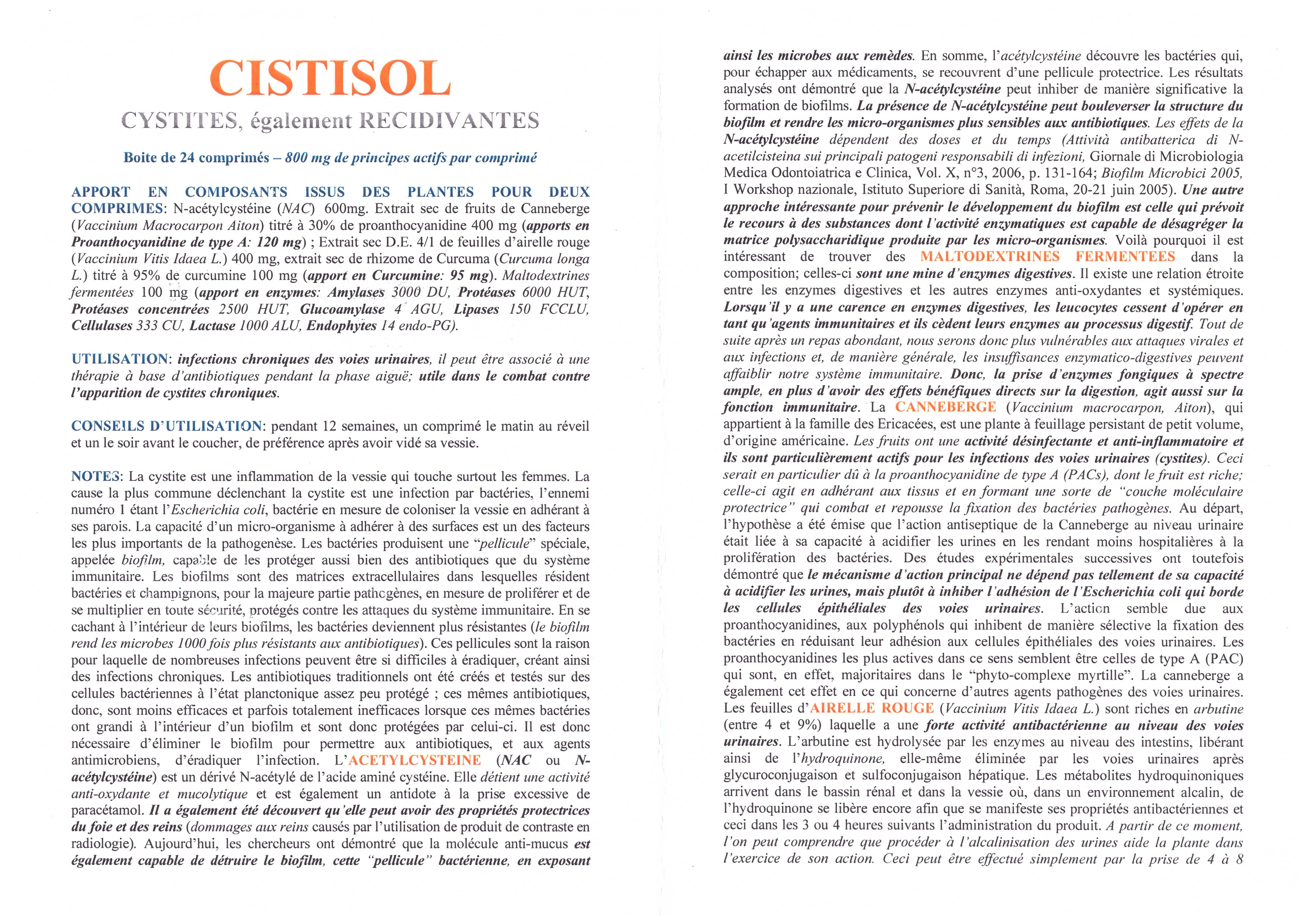 l’ennemi numéro 1 étant l’Escherichia coli, bactérie en mesure de coloniser la vessie